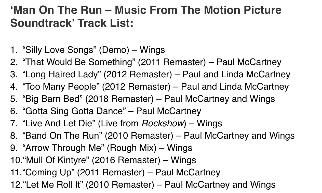Update:  A 2025 documentary about Paul McCartney from the breakup of The Beatles through his Wings era is Man On The Run. (They obviously liked my 2017 title.)  The film will stream on Amazon Prime Video starting February 27th, 2026.