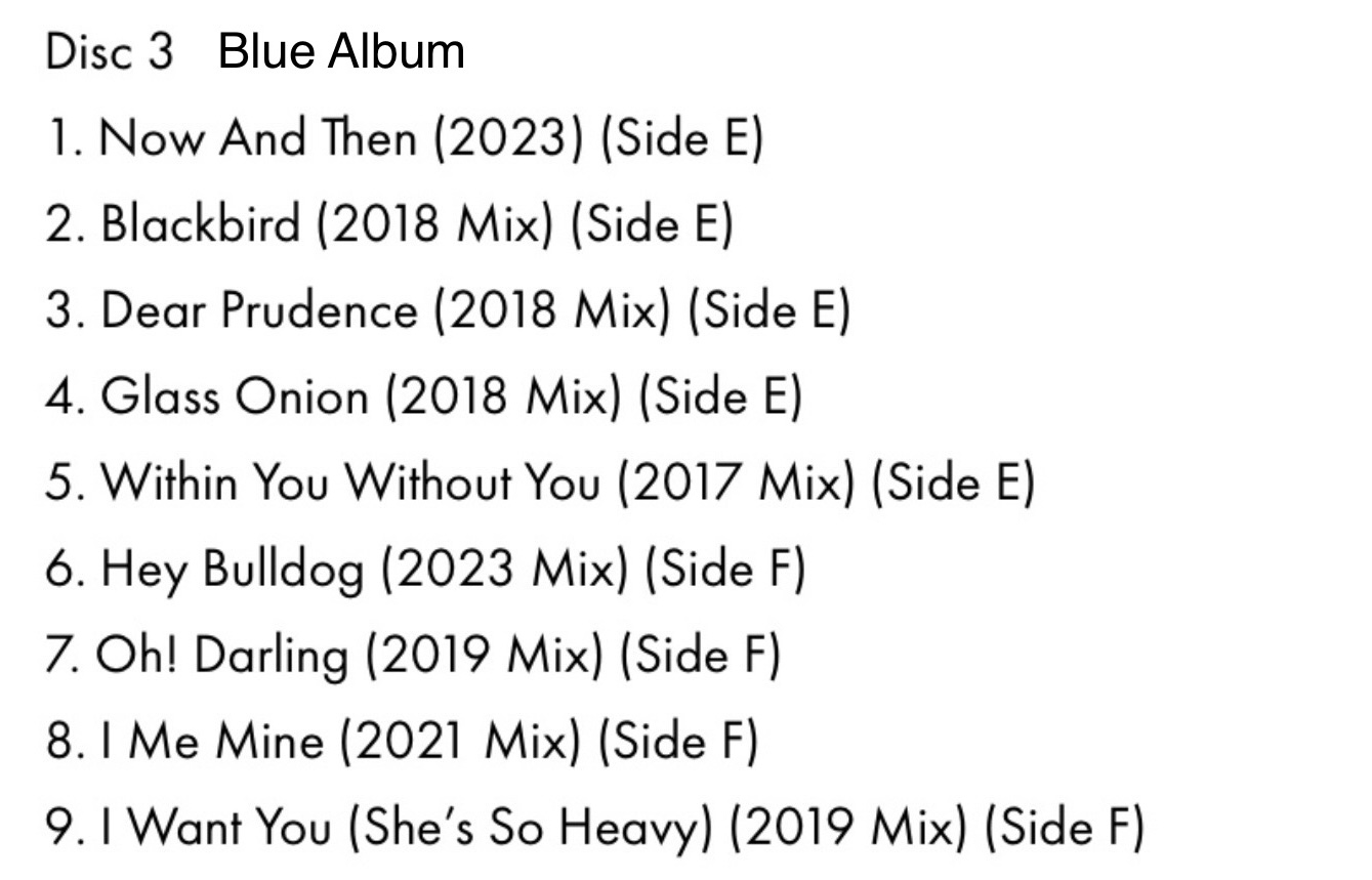 The Blue Album (The Beatles 1967-1970) mostly has songs that have already been available in their remixed form in the 50th Anniversary releases. Only six of the tracks are newly remixed, including songs from the Magical Mystery Tour album. There are nine added songs that were not on the 1973 release. Those are indicated with *.